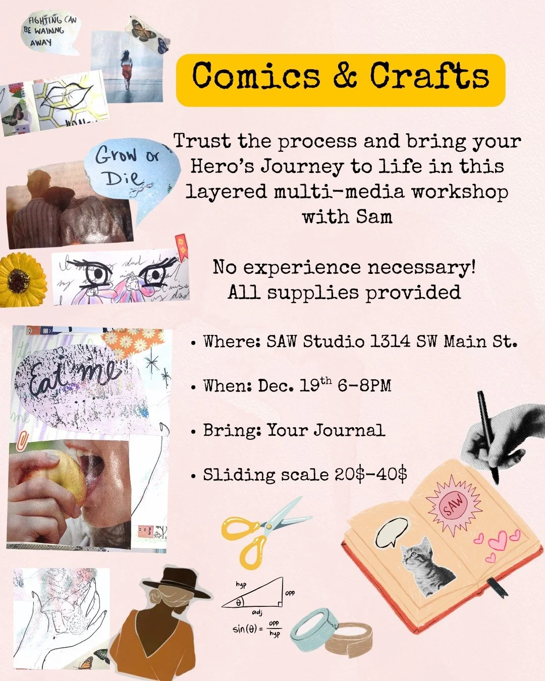 We offer a range of free, sliding scale, and affordable opportunities to engage with comics and creativity at SAW HQ in Gainesville, Florida.