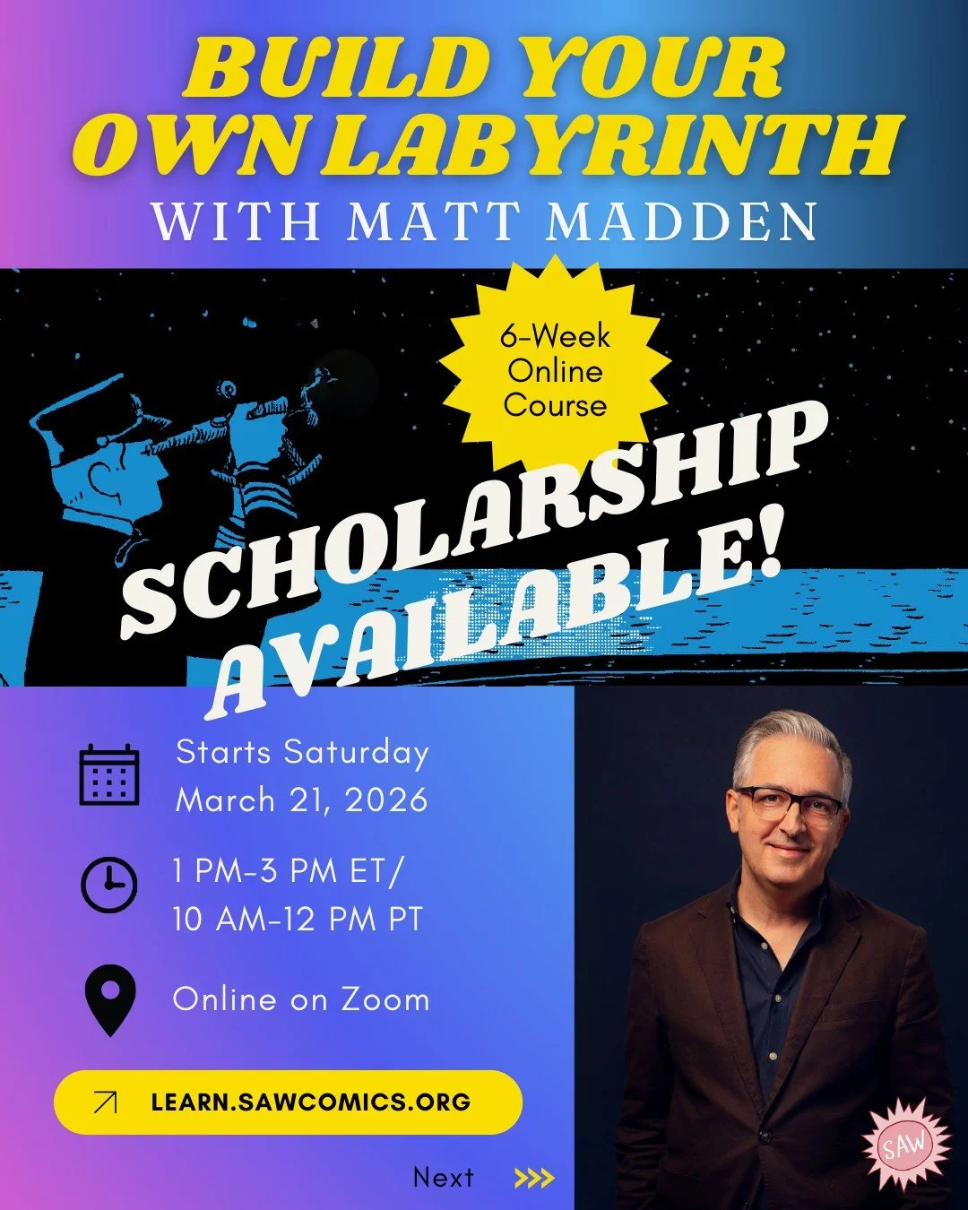 A Year-Long Grad School-Level Program in Comics, 10 Courses, Sept 2025-May 2026 plus summer options. Click here to learn more.$3499